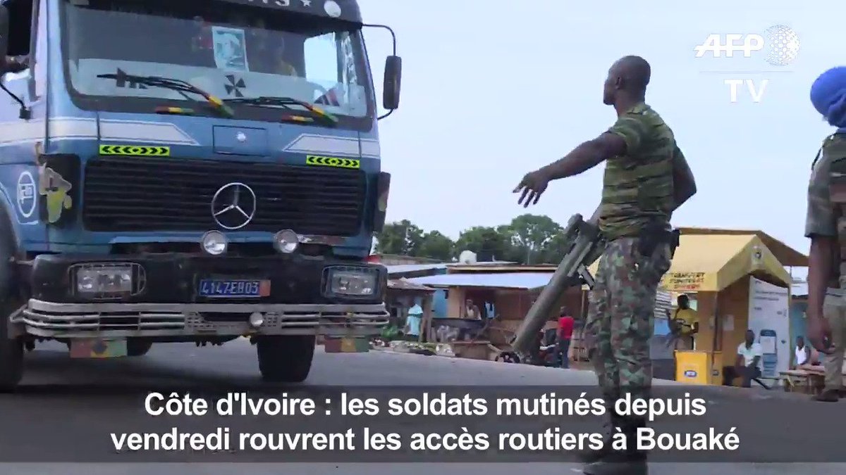 8h : Un temps libérés dimanche soir, les accès à la ville de Bouaké sont à nouveau contrôlés par les mutins. Ces derniers laissent passer certains véhicules en les rançonnant.