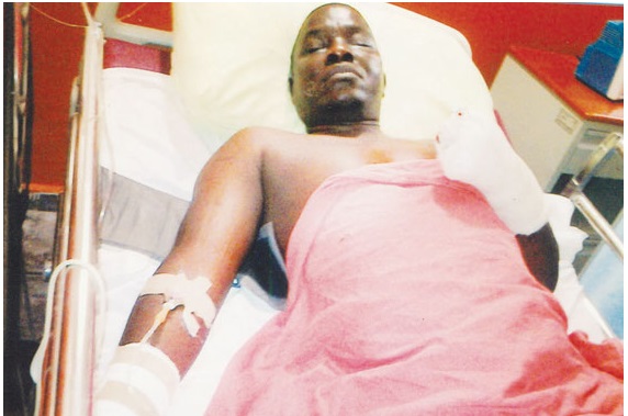 Sur ces photos prises lors de son hospitalisation à Abuja, l’on voit l’Ivoirien victime de Boko Haram. Depuis ce temps, son état ne s’est pas amélioré, alors qu’il est aujourd’hui sans le sou. (Photo DR)
