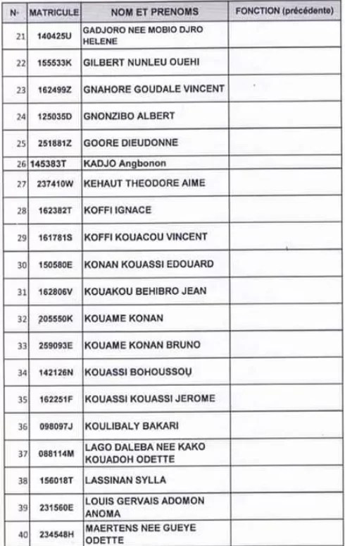 Au total cinquante-six (56) agents du Ministère de l’Éducation Nationale et de l’Alphabétisation (MENA) dont les noms figurent sur la liste ci-dessous sont concernées par cette affaire. Ils risquent la radiation au cas où ils ne se présentent pas avant le dernier délai avec les documents recommandés pour la Direction des Ressources Humaines (DRH).