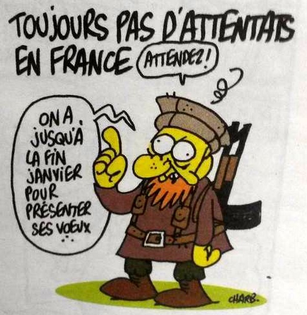 13h52 – Voici le dernier dessin de Charb, tué dans l’attentat terroriste contre Charlie Hebdo. Il avait été publié dans le dernier numéro du journal satirique.