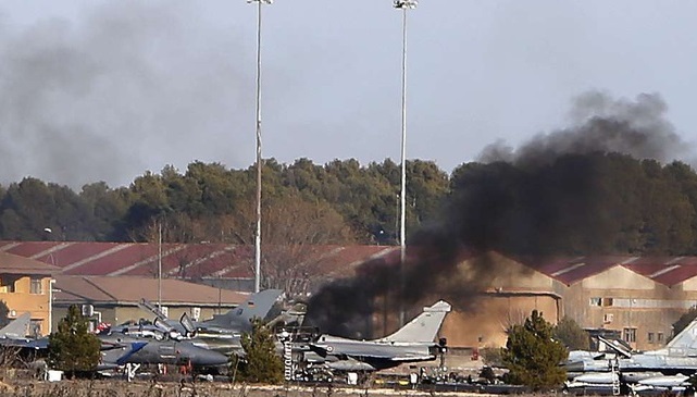Le ministère de la Défense précise qu’«à 15h30 sur la base aérienne d’Albacete en Espagne, un F16 Biplace des forces aériennes grecques s’est écrasé sur un des parkings de la base où étaient stationnés des avions de chasse de plusieurs nationalités, dont deux Alpha Jet, deux Mirage 2000D et deux Rafale français. Le ministre de la Défense, Jean-Yves Le Drian, se rendra sur place mardi après-midi.