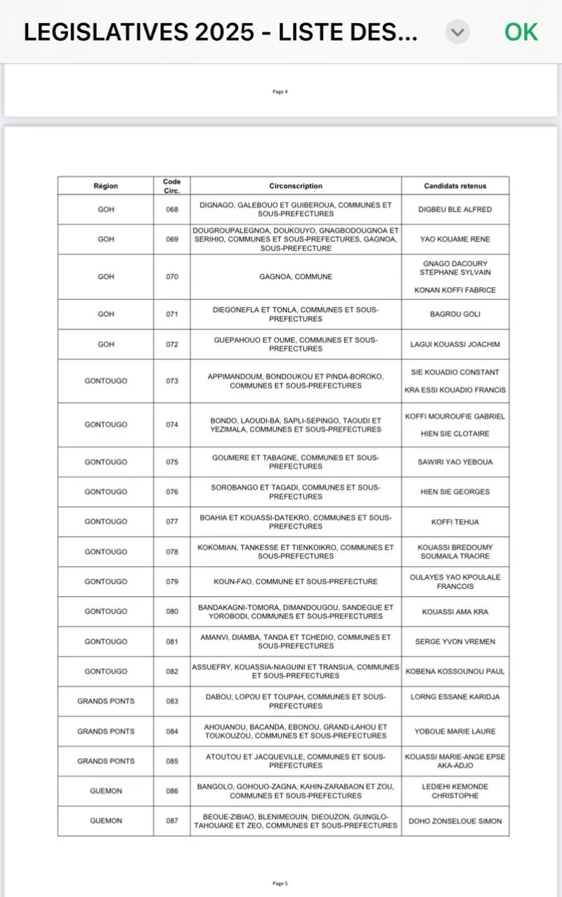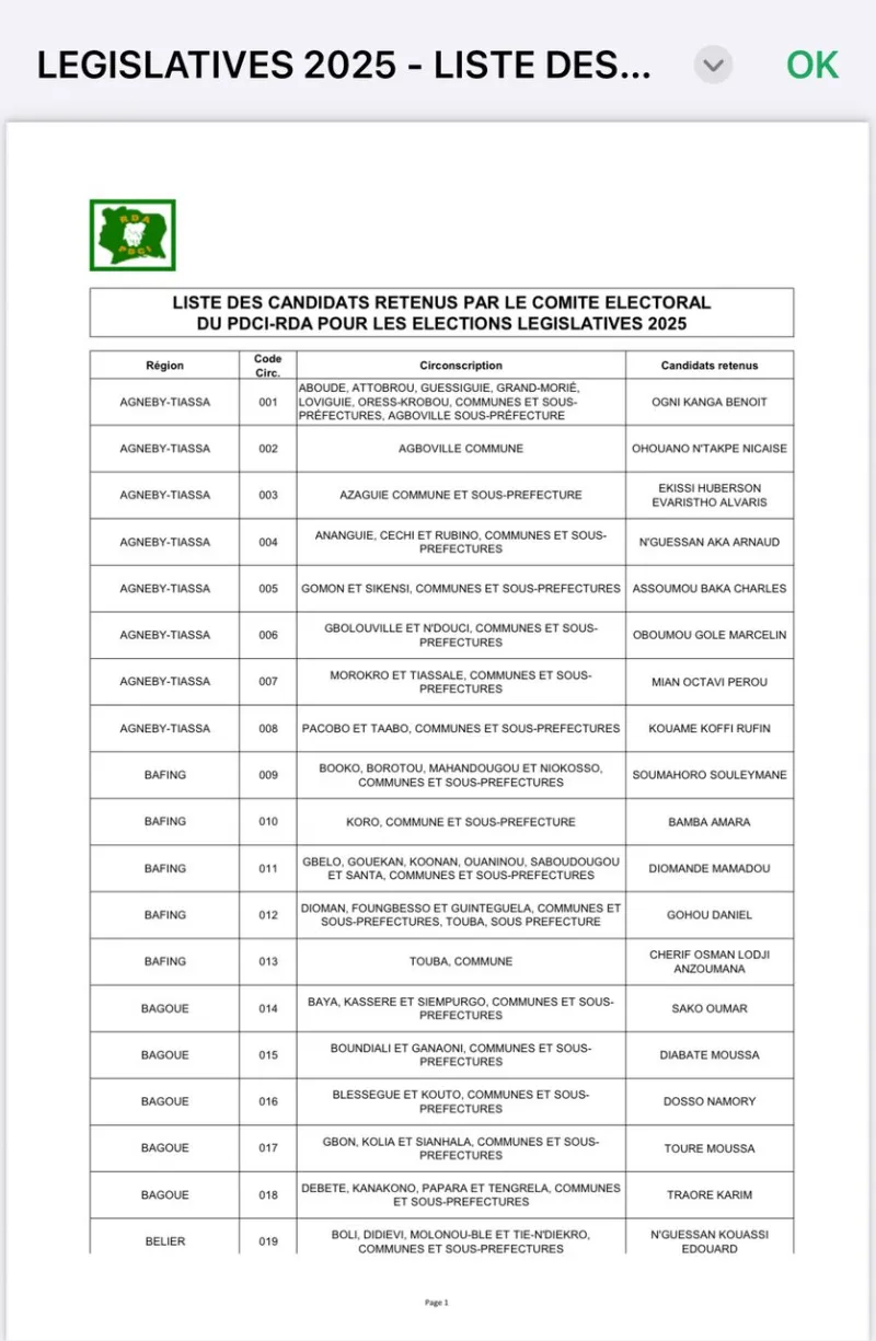 Le Parti démocratique de Côte d’Ivoire – Rassemblement démocratique africain (PDCI-RDA) a probablement rendu publique, la liste complète de ses candidats pour les élections législatives 2025.