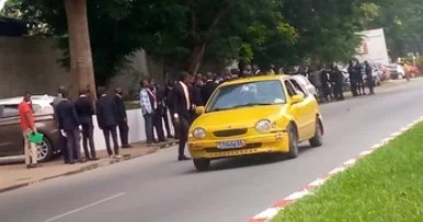 En tout cas ce samedi 16 octobre 2021 matin autour 10 h alors que des éléments de sécurité privée tous vêtus en veste noire étaient postés en bordure de l’axe partant du carrefour Saint -Jean jusqu’au lieu du Congrès le Sofitel Hôtel Ivoire dans l’attente de leur leader Laurent Gbagbo . C’est en ce moment qu’arrive un détachement impressionnant des forces de l’ordre sur les lieux .