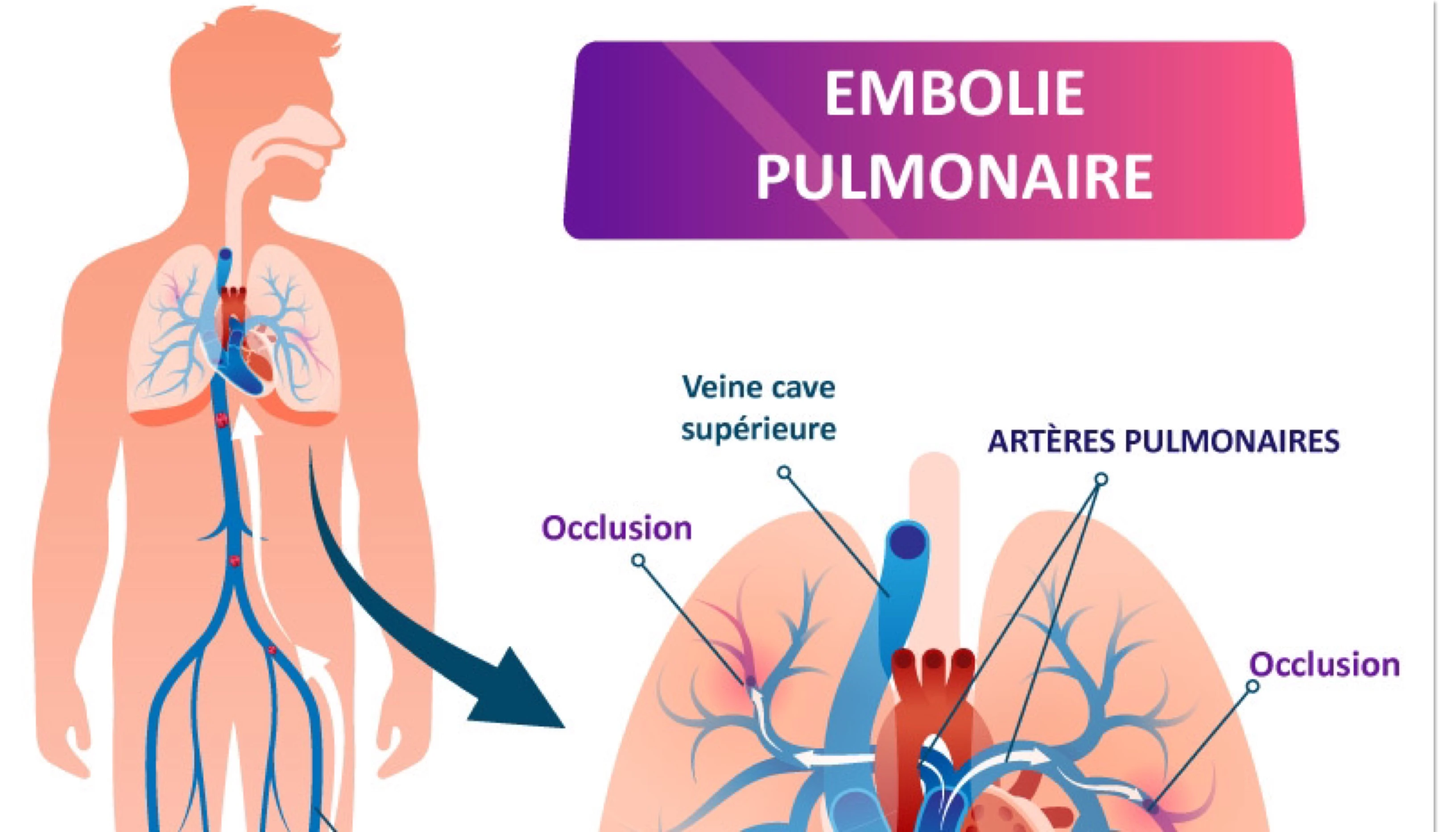 L’embolie pulmonaire se produit lorsqu’un caillot sanguin, souvent formé dans les veines profondes des jambes (thrombose veineuse profonde), se détache et migre vers les poumons. Ce caillot bloque une ou plusieurs artères pulmonaires, perturbant le flux sanguin et l’oxygénation des tissus.