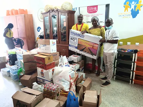 Les membres de la coordination nationale du Rotaract, sont venus les bras chargés de vivres et non vivres d’une valeur de 1,5 millions FCFA pour soutenir les parents des enfants souffrant du cancer. C’est une trentaine d’enfants malades du cancer dont douze sont pensionnaires de la‘’ Maison Akwaba’’ de l’ONG Soleterre Côte d’Ivoire.