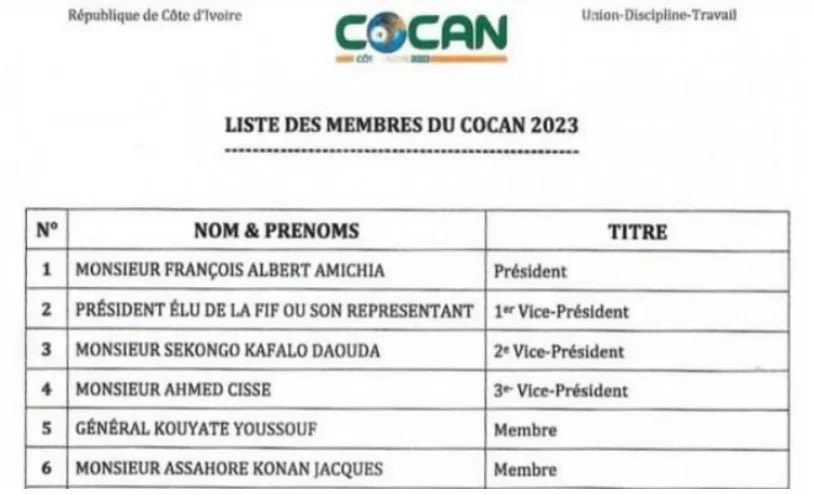 Après la Médiation du Premier Ministre, Patrick Achi, les nouveaux membres du Comité d’Organisation de la Coupe d’Afrique des Nations (COCAN) 2023 sont désormais connus.